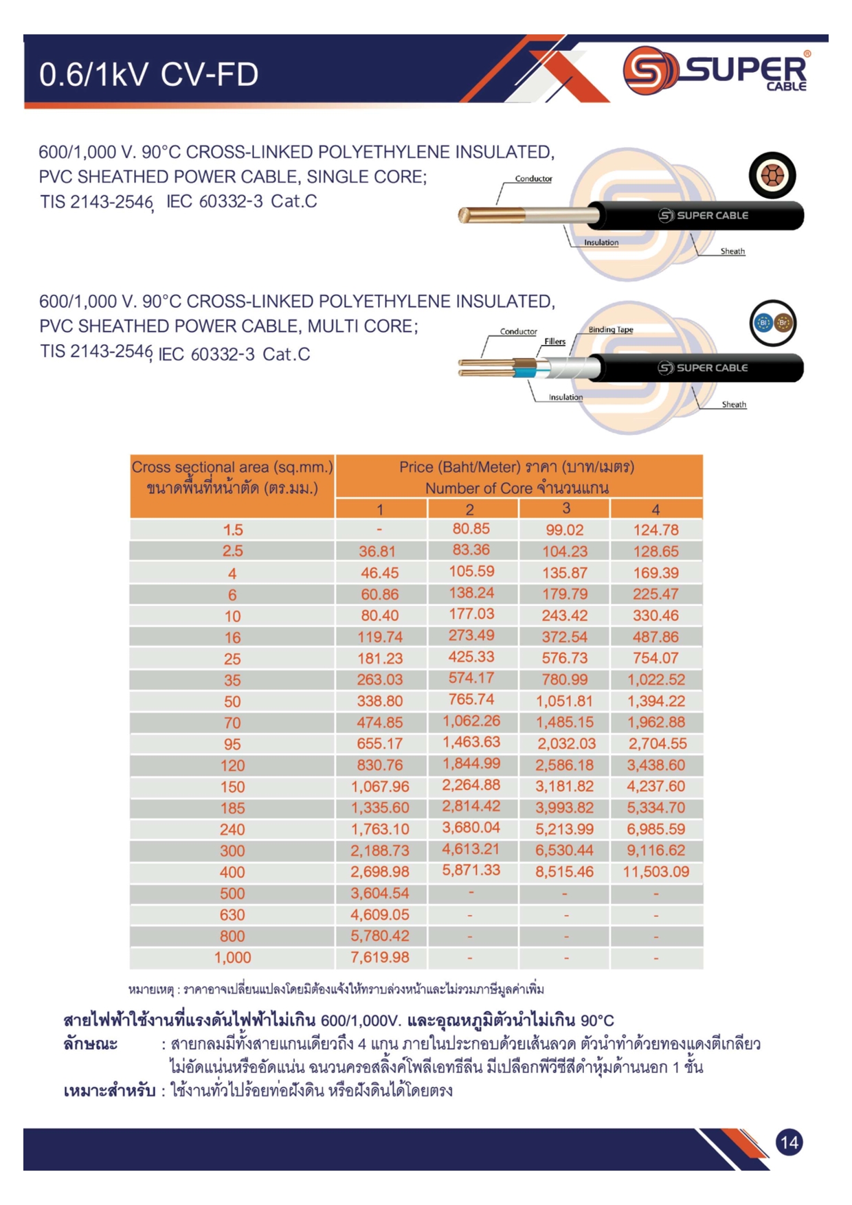 สินค้า ใน สายไฟ 0.6/1kV-CV-FD (0 ชนิด)