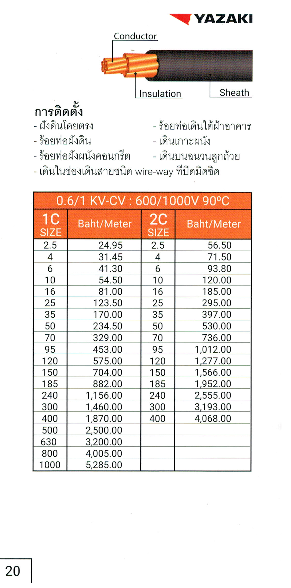 สินค้า ใน 0.6/1 KV-CV 1C - 4C (0 ชนิด)